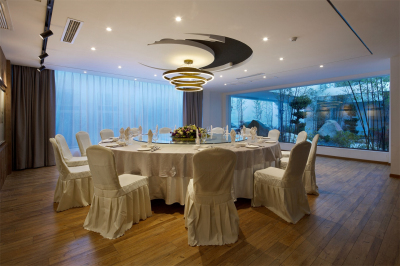 酒店的禪意茶室是一個非常值得一去的空間,設計師巧妙運用射燈,整個茶室的氛圍也因此變得很寧靜。再品上一壺銀箔泉水沖泡的清茶,賞賞山景,閑適慢生活也不外如此。