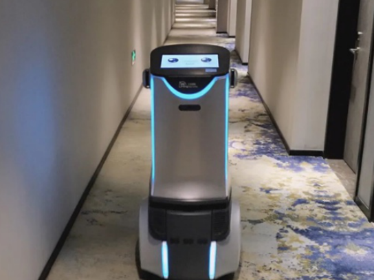 酒店機器人送物和自動販售機的搭檔是近期廣受賓客好評的服務,目前客房購物系統及新一代送物機器人已在首旅如家旗下酒店落地試點。客人掃描客房購物二維碼選購大堂販售機里的零食、物品后,自動販售機會協同送物機器人,根據售貨指令自行交接貨品,并由送物機器人配送至相應客房。取貨時,客人掃描機器人顯示屏上的二維碼即可打開艙門取出貨品。客人足不出戶即可完成購買,取物送貨全程無接觸。對于24小時敬業職守的機器人,酒店也會對其進行高頻消毒,以保證客人放心使用。