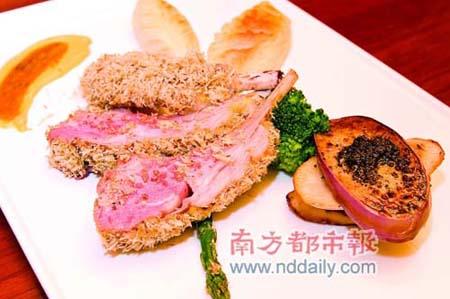 口感體驗:面包糠經(jīng)過長時間焗烤,酥脆爽口,與羊排的松軟可口、鮮嫩多汁形成強烈的對比,別有一番風味,法芥、蒜蓉、迷迭香、什香草等香料的味道已滲透至羊排內(nèi),很好地去除了膻味。