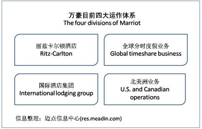 據了解,萬豪目前的運作體系分成四個部分:麗茲卡爾頓酒店(Ritz-Carlton),全球分時度假業務(Global timeshare business)、國際酒店集團(International lodging group)以及美國和加拿大的業務(U.S. and Canadian operations)。