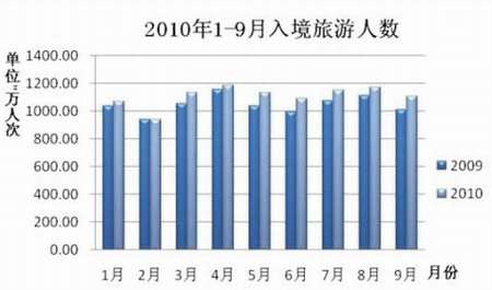1-9月,我國入境旅游累計人數(shù)達(dá)到9977.23萬人次,同比增長6.21%,其中,入境過夜旅游累計人數(shù)達(dá)4157.52萬人次,同比增長了10.73%。全國實現(xiàn)旅游(外匯)收入337.10億美元,比去年同期增長15.78%。