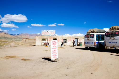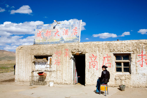 這是西藏阿里崗仁波齊神山腳下公路邊的一個小站點,只有幾排低矮的土房,但是房頂上卻是電腦噴繪的大幅招牌,赫然寫著:成都大酒店!