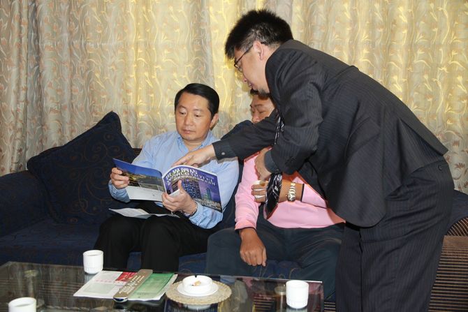世界酒店聯(lián)盟創(chuàng)始人兼執(zhí)行主席吳軍林(右一)受婺源縣委書記林顯君(左一)和三清山旅游集團(tuán)董事長(zhǎng)陳斌(右二)接見(jiàn) 世界酒店聯(lián)盟創(chuàng)始人兼執(zhí)行主席吳軍林(右一)向婺源縣委書記林顯君(左一)介紹雜志 世界酒店聯(lián)