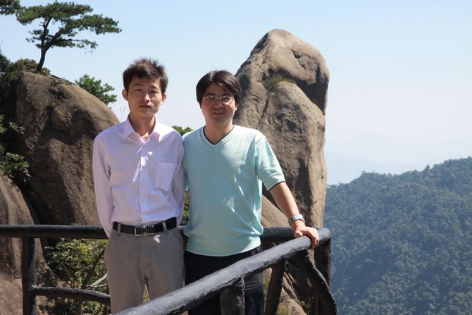 世界酒店聯(lián)盟創(chuàng)始人兼執(zhí)行主席吳軍林(右一)向婺源縣委書記林顯君(左一)介紹雜志