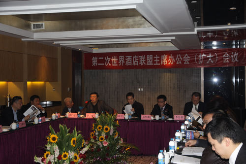 為了更好地在新時期做好聯盟各項重要工作,促進中國與國際酒店業的繁榮與發展,進一步做好世界酒店聯盟的各項工作,世界酒店聯盟于2011年10月30日在北京召開第二次世界酒店聯盟主席辦公會(擴大)會議。出席本次會議的有酒店地產投資商、國際著名酒店集團、國企及民營酒店管理公司的董事長和總裁,主要代表有:中國旅游協會副會長、錦江國際集團董事高級副總裁、昆侖飯店董事長侶海巖、萬豪國際集團中國區發展副總裁林聰、金陵酒店管理公司董事長胡明、三清山旅游集團董事長陳斌、粵海國際酒店管理集團董事長鄭瑋玲、天倫酒店管理集團總裁吳曉燕,同時特邀出席的還有中國社科院、旅游衛視以及中國旅游報等有關領導和專家參加本次會議。