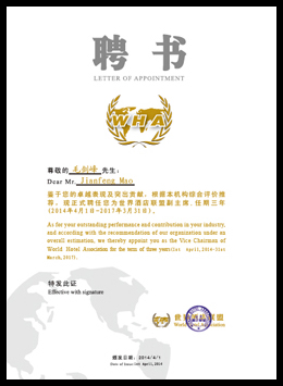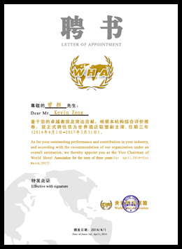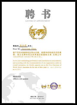 法拉帝國際酒店及度假村集團全球總裁曾顏任世界酒店聯盟副主席;