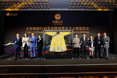 發(fā)布活動現(xiàn)場還舉辦了美獅東方行動首個傳統(tǒng)文化煥新鑒賞會——錦秀東方云錦鑒賞會,以線中有界、云影有靈、錦中秀場三段別開生面的沉浸體驗,讓嘉賓們直觀了解和感受云錦這一中華瑰寶。鑒賞會更邀請到我國世界級非遺南京云錦傳承人、研究員級高級工藝美術(shù)師、為故宮復(fù)織云錦文物的戴健大師,現(xiàn)場分享了云錦技藝,并帶來由他親手織造的三件清代皇家云錦龍袍鳳袍復(fù)刻重器,為到場嘉賓帶來一場云錦煥新盛宴。