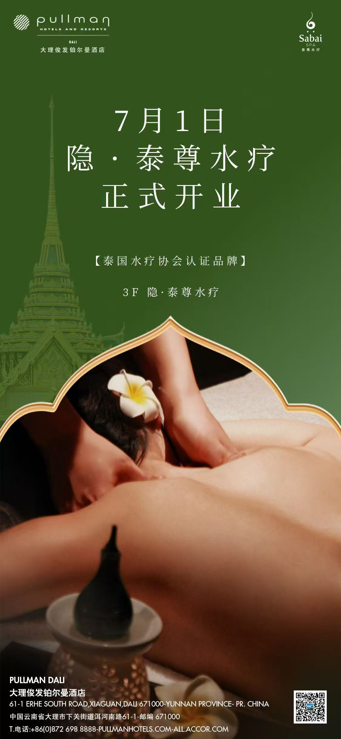 2025年7月1日起,大理俊發(fā)鉑爾曼酒店三樓的泰尊SPA項(xiàng)目將正式營(yíng)業(yè)。這也是泰國(guó)SPA協(xié)會(huì)首次在大理與國(guó)際品牌酒店的正式合作項(xiàng)目。旨在為酒店賓客及本地顧客提供綠色健康的專業(yè)優(yōu)質(zhì)服務(wù)。
