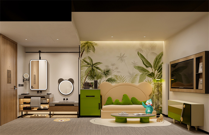 在服務細節方面,客房精選0印染裸棉床品、75D天然乳膠床墊等高品質寢具,搭配法國百年香氛品牌"薇弗"洗護用品、迷你吧膠囊咖啡機及膠囊咖啡、多種口味茶飲等暖心配置,全方位提升入住體驗。針對細分市場需求,酒店特別打造閨蜜房、親子房等特色房型,閨蜜套房設有多功能娛樂區,集觀影、游戲、下午茶功能于一體,同時配備可變換的社交吧臺及靈活的三床位布局,完美適配女性聚會需求;親子套房則動靜分區,配備兒童床、兒童專屬洗手臺和親子互動區,讓旅居的親子時光同樣充滿童趣與便利,充分展現了和風心驛品牌對當代旅居需求的精準把握與人性化考量。