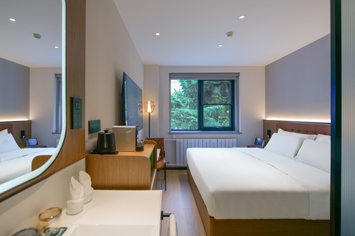 和風心驛北京朝陽高鐵站店以智能化服務為核心,全方位提升“輕旅時代”旅客的出行效率。客房搭載“天貓精靈”AI智能客控系統,支持語音調控燈光設備;德國貝朗智能馬桶腳感沖水功能解放雙手,輕松開啟智能享受。酒店還配備了獨立健身房及自助洗衣房,滿足旅途中的多樣化生活需求。為進一步契合Z世代對便捷旅行的需求,大廳增設24小時自動販賣機,同時提供集臨時會議、辦公及休閑為一體的多功能休息區,真正實現“入住即享”的輕旅體驗。