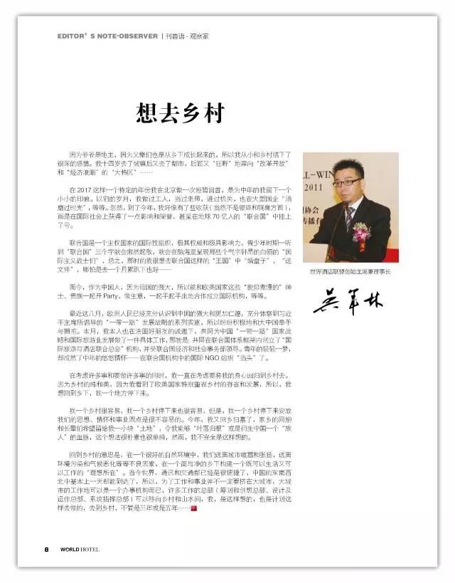 In recent months, European people have already fully realized the mightiness and more kindness of China, and fully experienced benefits from “the Belt and Road Initiatives” strategy proposed by president Xi Jinping, thus join hands and embrace with China actively in succession. During this month, I was invited by my French friend to do a specific job for China’s “the Belt and Road Initiatives” strategy and the development of international tourism, namely, to establish “International Federation of Hotel and Tourism(FIHOTO)” in the system framework of United Nations and I was invited to be a leader of the United Nations Department of Economic and Social Affairs. I have been a head of the NGO organization of the United Nations - a dream from my teenage finally became a profound emotion of my middle age.