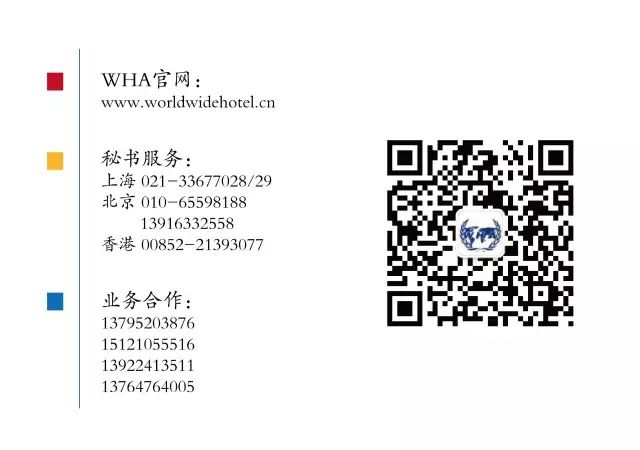 【WHA】和【泛旅通訊】: 國際視野,行業聲音,權威發布 WHA是世界酒店聯盟的英文縮寫.WHA是酒店業最具影響力的文化,資訊,傳媒,論壇(峰會),獎項評選,品牌連鎖加盟,投資管理,供應商產業鏈合作的綜合服務平臺關注。 【WHA】和【泛旅通訊】官方雙微信平臺,您就能在這里得到最新,最全的酒店行業資訊和權威報道。 世界酒店聯盟(WHA)旗下機構及品牌包括:“世界酒店”雜志,世界酒店網,世界酒店論壇,世界酒店聯盟大會,五洲鉆石獎,五洲鉆石酒店組織,世界酒店設計中心,世界酒店品牌研究中心,“泛旅文化傳播機構”,以及全面合作的“溫德姆酒店集團”,“貴州華星酒業集團” , “旅游衛視”,“美通社”等。 歡迎您成為【WHA】和【泛旅通訊】官方微信平臺的讀者與作者,我們的內容要求是:及時,真實,權威。