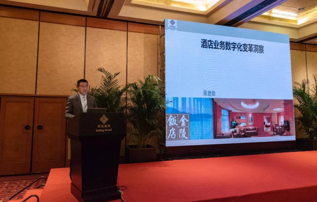 隨后,陳建勛作為集團數字化變革領導小組的副組長,代表項目領導小組作了“酒店業務數字化變革洞察”的專題分享,和大家一同分析數字化變革藍圖、2019數字化變革關注點、流程體系、眾多項目案例以及酒店連鎖規模發展曲線。陳總表示,“我們需要洞察信息化新技術的影響,并且未雨綢繆,關注數據安全的重要性,我們更需要度過跨越期,做強總部、增加管理能力、知識管理、人才建設及體系建設。”