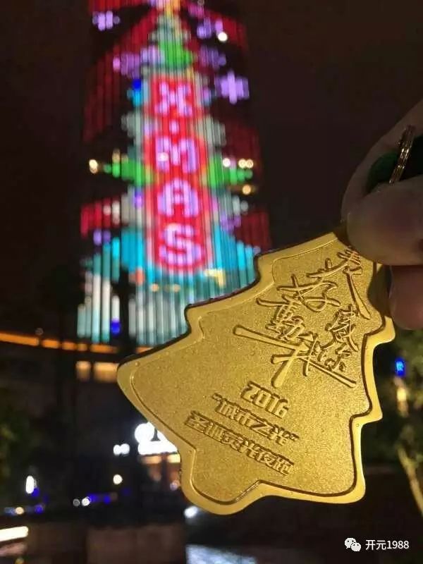 充滿圣誕氣息的完賽獎牌,來一張與杭城最高圣誕樹的完美合影