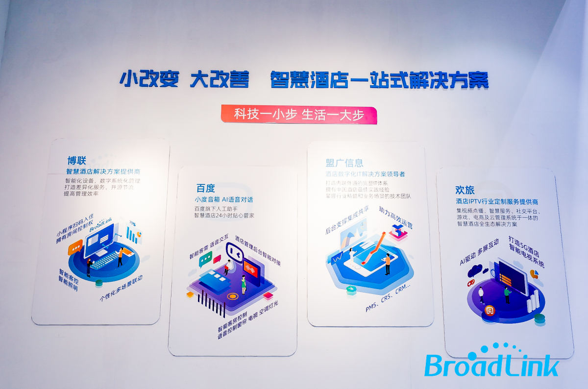 博聯專注于智能家居產品與服務領域,通過整合物聯網、云計算、大數據及人工智能等先進技術,提供智慧酒店、智能地產、全屋智能、智慧養老、智能園區等整體解決方案,目前博聯CloudThink解決方案已經落地深圳、杭州、北京、上海、廣州、成都等全國25個城市,與招商、萬科、中糧、世茂、融創、藍光BRC等18家Top級地產商達成合作,全屋智能家居已交付一百余個樓盤智能化精裝批量項目,約一萬五千余戶,智慧酒店項目應用超過3萬間房;智慧社區及園區服務面積超過3000萬平方米。在發布會上,博聯智能應用事業部總經理趙哲海全面深刻剖析聯盟融合打造的智慧酒店閉環方案,同時宣布開啟智慧酒店“0元改造計劃”。BroadLink 聯合智宿家及借宿平臺,開啟酒店&民宿“0元改造計劃”,將為酒店&民宿業主開啟一波好利模式。