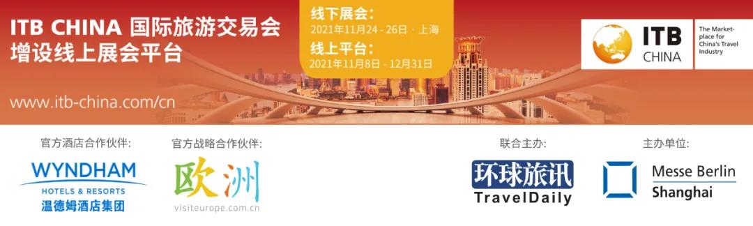 國內規模最大的B2B旅游交易會 ITB China 是一場專注于中國旅游市場的行業貿易盛會。第四屆 ITB China 將于2021年11月24-26日在上海世博展覽館舉行,同時新增線上平臺,于11月8日開放,至12月31日截止。展會同期舉行ITB China論壇。詳情查詢官網:www.itb-china.com/cn