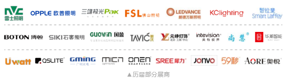 歷年吸引到雷士照明、三雄極光、歐普照明、佛照、朗德萬斯、康彩、拉斐、博頓、石客、國盈、泰沃、元崢、英特視界、尚慧、華潮、優一像、七色光、廣明、麥尖、歐能、犀力、中沃、鈺創、奧悅等照明大牌,并得到他們的一致好評與認可。