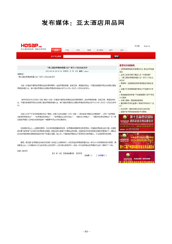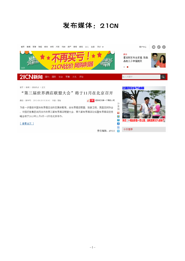 第三屆世界酒店聯(lián)盟大會新聞發(fā)布會媒體簡報