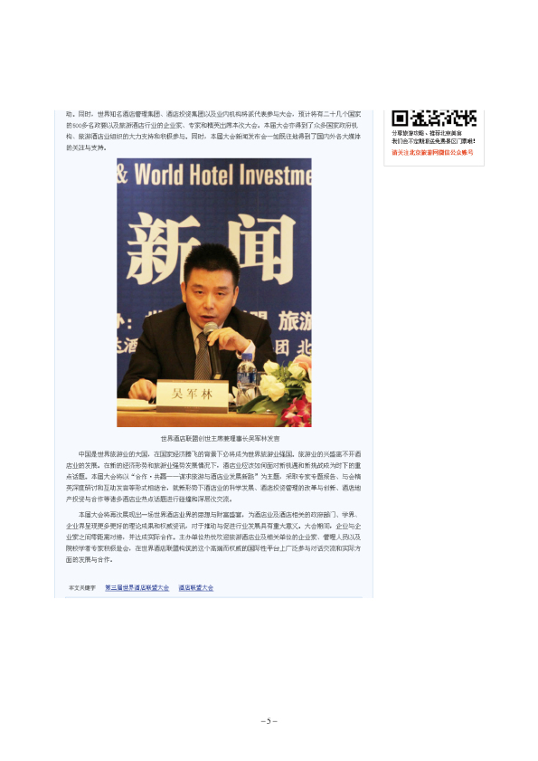 第三屆世界酒店聯(lián)盟大會媒體簡報