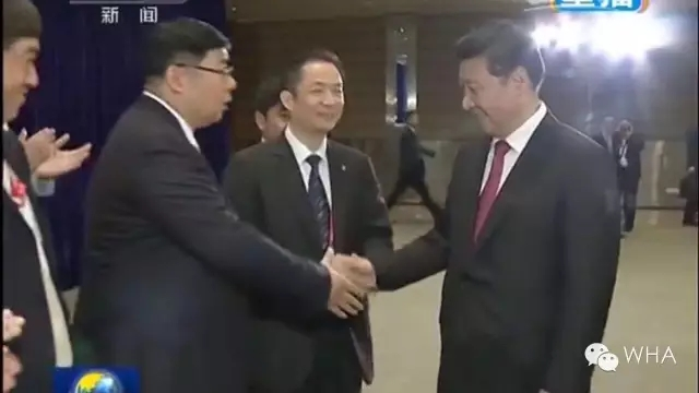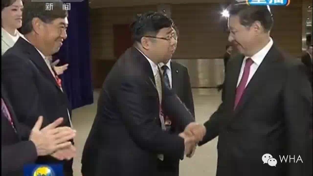 On March 28th, 2015, WHA Co-Chairman Li Yong and delegates of Chinese and foreign entrepreneurs present at the opening ceremony of BOAO Forum for Asia Annual Conference 2015 are warmly received by President Xi Jinping, leader of the People’s Republic of China.