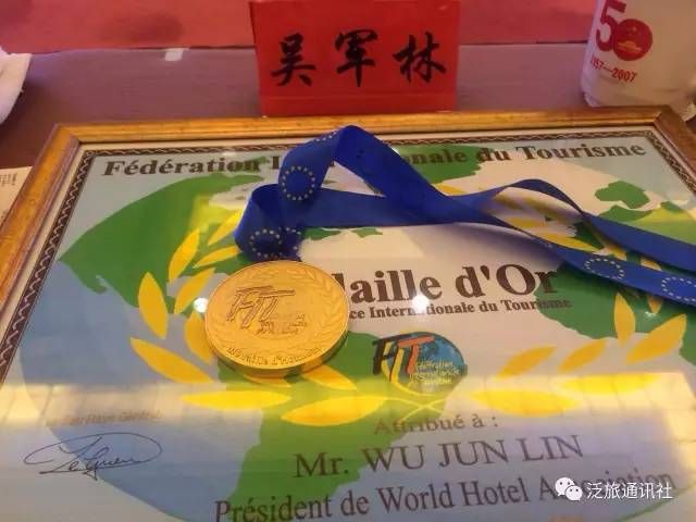 經過長時間考察和調查評估后,國際旅游聯合會正式于12月9日聘請吳軍林擔任該聯合會副主席兼大中國區主席。國際旅游聯合會主席埃里克.杜履克專程從法國飛抵中國向吳軍林頒發聘書和金星勛章。吳軍林現任世界酒店聯盟創始主席兼理事長,是在中國投資創辦國際酒店行業組織和國際酒店論壇第一人,被譽為“酒店業論壇之父”。國際旅游聯合會是世界四大國際旅游組織之一(世界旅游組織、世界旅游業理事會、國際旅游聯合會、亞太旅游協會),該組織成立于1967年,是法國前總統戴高樂將軍親自督辦的國際性非官方組織,國際旅游聯合會總部設在法國巴黎,在全球近50個國家和地區設有辦事機構,享有很高聲譽,法國歷屆總統是該聯合會的榮譽主席。國際旅游聯合會金星勛章原則上頒發給為促進國際旅游事業發展做出了杰出貢獻的有關國家元首、旅游部長、行業組織領袖和有關省市長們。