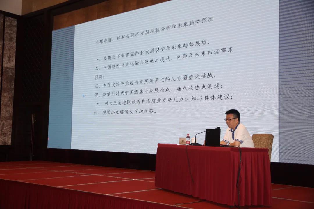 今日上午,世界酒店聯(lián)盟主席、聯(lián)合國經(jīng)社部國際旅游與酒店聯(lián)合總會執(zhí)行主席、泛旅文化集團董事長吳軍林應江蘇鐘山賓館集團邀請在江蘇飯店做了專場演講,該集團三百多位老總及酒店經(jīng)理人認真聆聽了演講。在整整兩個半小時內(nèi)吳軍林主席與大家分享了主題為:“全球疫情:旅游業(yè)經(jīng)濟發(fā)展現(xiàn)狀分析和未來趨勢預測”的演講,并圍繞以下六個方面進行了闡述:一、疫情之下世界旅游業(yè)發(fā)展裂變及未來趨勢展望; 二、中國旅游與文化融合發(fā)展之現(xiàn)狀、問題及未來市場需求預測; 三、中國文旅產(chǎn)業(yè)經(jīng)濟發(fā)展所面臨的幾方面重大挑戰(zhàn);四、疫情后時代中國酒店業(yè)發(fā)展難點、痛點及熱點闡述; 五、對長三角地區(qū)旅游和酒店業(yè)發(fā)展幾點認知與具體建議等。除此之外,吳軍林主席還解答了現(xiàn)場提問。專場講座結束后,吳軍林主席和江蘇鐘山賓館集團黨委書記、董事長朱銀生及集團領導班子成員等進行了廣泛交流和有關問題探討。