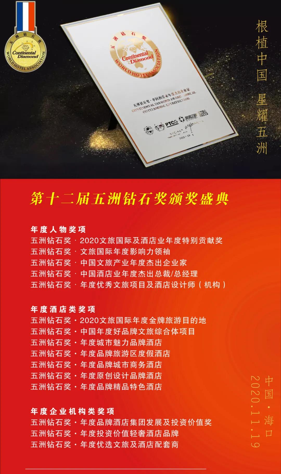 “五洲鉆石獎”評選及頒獎盛典是全球矚目的旅游和酒店行業品牌活動,被譽為旅游服務和酒店行業“奧斯卡”大獎。
