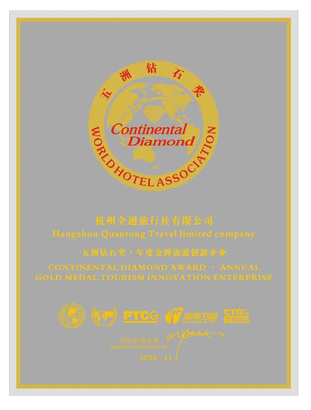 The latest news is that the "Cultural Tourism International Summit and the 13th World Hotel Forum" will be held on November 18-19, 2020 (report for duty before 15:30 on November 18) in Hilton Hotel, Haikou, China.This year, as a famous tourist platform with the information and background - Quantong Travel Agency co., LTD (Hangzhou) and the World Hotel Association formal cooperation agreement, become "2020 Cultural Tourism International Summit and the 13th World Hotel Forum" series of activities of the co-organizer.At the same time won the "little Oscar" said the 12th Continantal Diamond Award • Annual Gold Medal Tourism Innovation Enterprises.ndustry for many years, and has participated in a series of activities of International Cultural and Tourism Summit and World Hotel Forum.