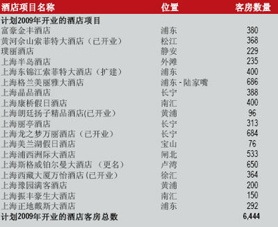 上海市旅游局發(fā)布的最新統(tǒng)計數(shù)據(jù)顯示,截至2008年12月,上海共擁有310家星級酒店,其中五星級酒店37家。