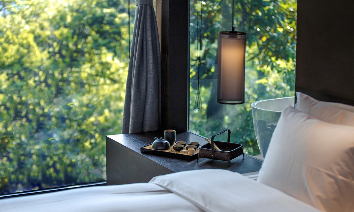 比如我們的茂居品牌,選址都在城市的知名景區,比如位于杭州龍井村的杭州龍井茂居酒店,這個酒店就位于茶園的半山腰,把自然巧妙得融進設計之中,讓客人感受到非常放松愜意的度假體驗;還有我們的九華茂居,就在九華山風景區,是禮佛圣地。
