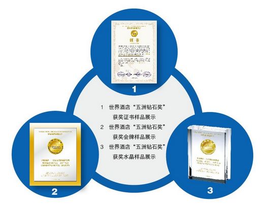 世界酒店“五洲钻石奖”的认证、颁奖机构为世界酒店联盟,品牌认证的执行机构为世界酒店品牌研究中心;“五洲钻石奖”的认证评审委员会由声望卓著、世界知名的企业家、学者、行业专家、媒体精英等所组成。